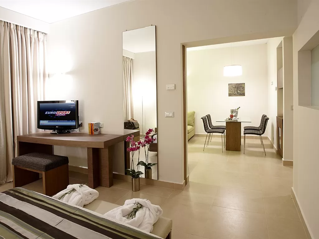 Suite Family Двуспальная кровать королевских размеров, диван, столовая зона (стол и 4 стула), оборудованный кухонный уголок, гидромассаж.