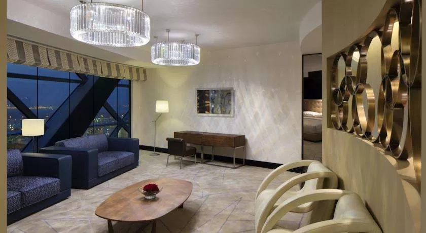 Номера и люксы отеля Hyatt Capital Gate оснащены кондиционером, телевизором с плоским экраном и док-станцией для MP3-плеера. Из окон открывается панорамный вид на город, а в некоторых номерах установлена глубокая гидромассажная ванна.