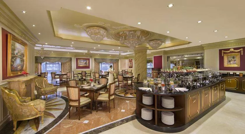 В эклектичной обстановке ресторанов отеля Royal Rose подают разнообразные блюда - от арабской до международной кухни. В кафе Brasserie можно заказать различные сорта чая, освежающие безалкогольные коктейли, закуски и торты.