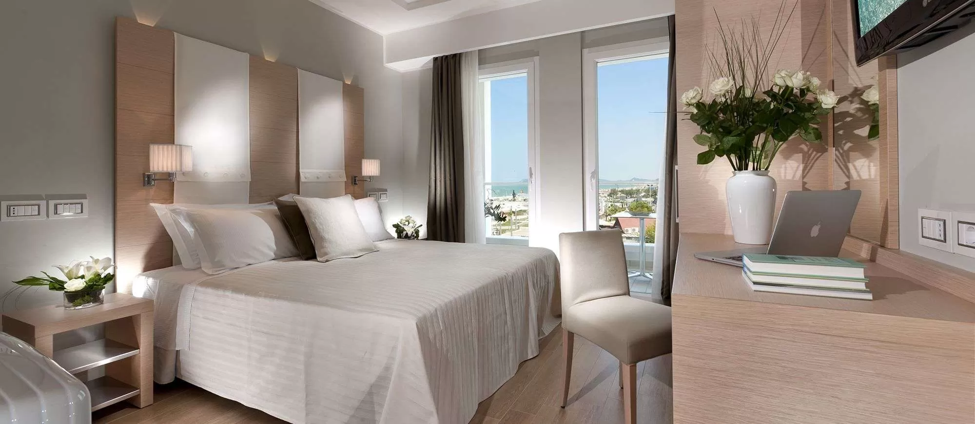 В номерах Standart и Superior - присутсвует боковой вид на море.