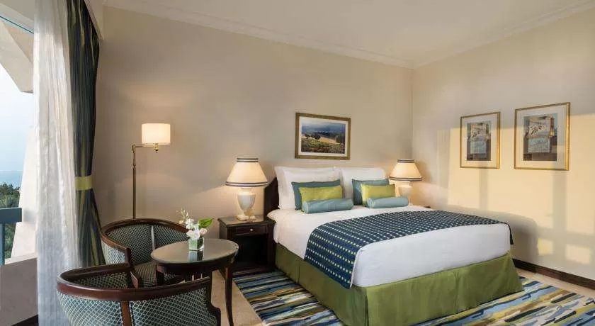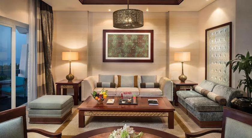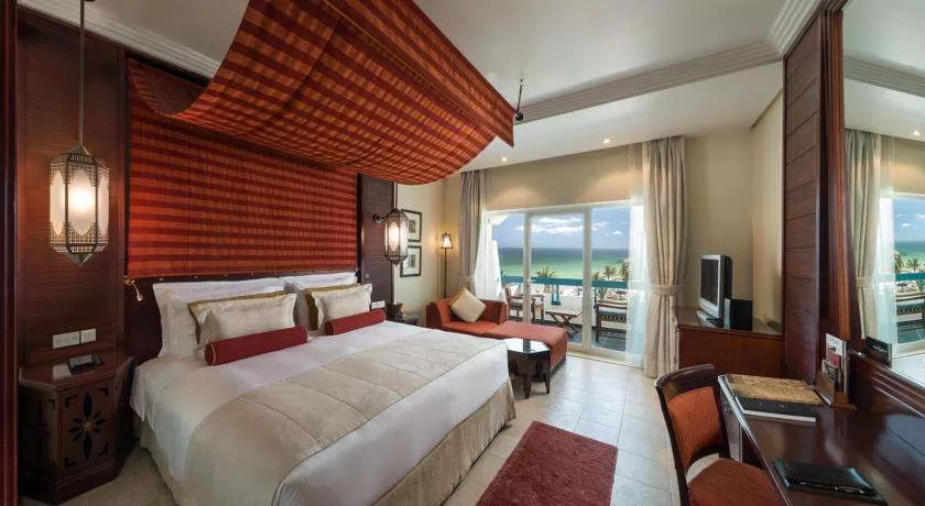 Номера отделаны в светлых тонах и обставлены элегантной деревянной мебелью в ближневосточном стиле. Шикарные номера и люксы выходят на собственный меблированный балкон или террасу. Из окон открывается панорамный вид на Персидский залив и пышный ландшафтный сад.