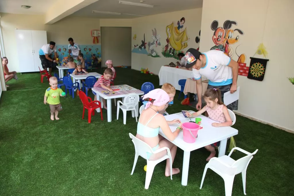 Анимация, бассейн, детская кроватка, детский клуб, детские стульчики в ресторане, детская площадка.