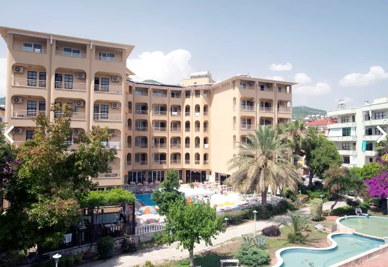 Отель расположен в 1 км от центра Алании, на побережье Средиземного моря, в 127 км от аэропорта Анталии, в 200 м через дорогу от городского пляжа, в 40 км от аэропорта Газипаша г. Алании.