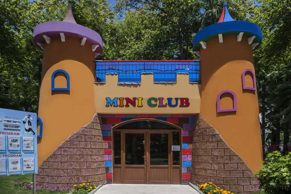 3 детских бассейна, 8 водных горок, детская кроватка (бесплатно, по запросу), детские стульчики в ресторане, детская площадка, детский клуб (4-12 лет), прокат колясок (залог), луна-парк (бесплатно- определенные часы), детский буфет.