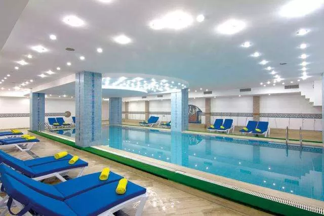 2 открытых бассейна, 2 водные горки, крытый бассейн, конференц-зал (до 550 чел), оздоровительный центр, основной и 2 ресторана A’la Carte (Мексиканский, Османский), 2 бара, турецкий шатер.