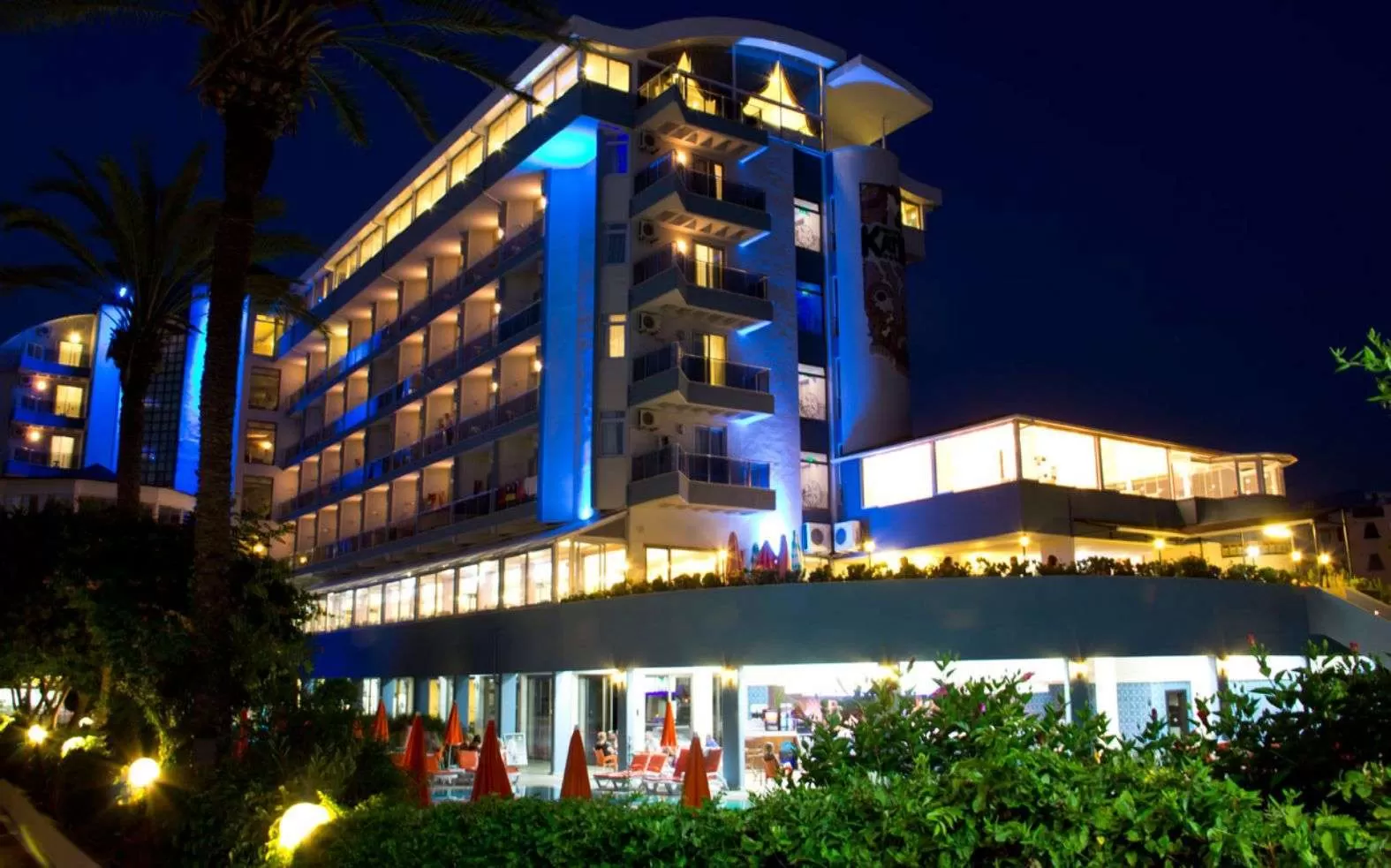 Отель, площадью 7.200 м², находится в 135 км от аэропорта г.Анталии, в 3 км от центра г.Алании, в местечке Обакёй, на первой береговой линии.