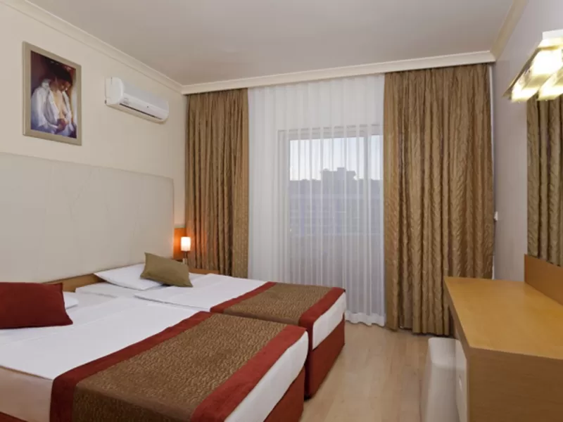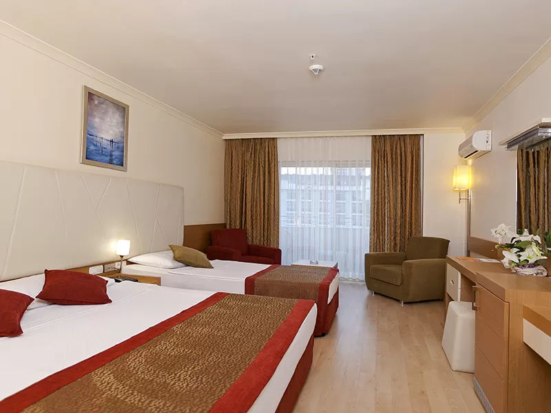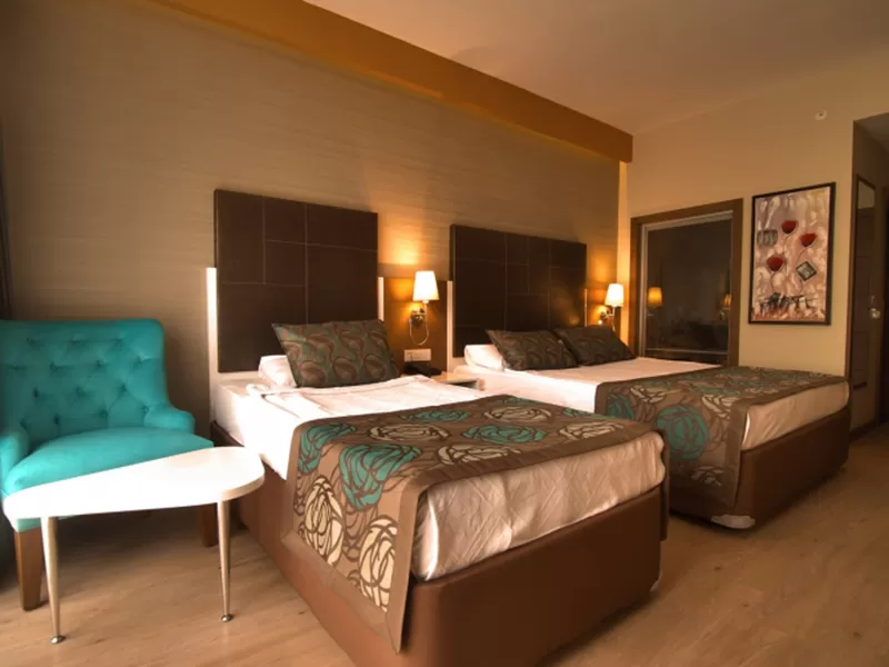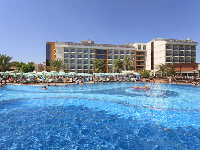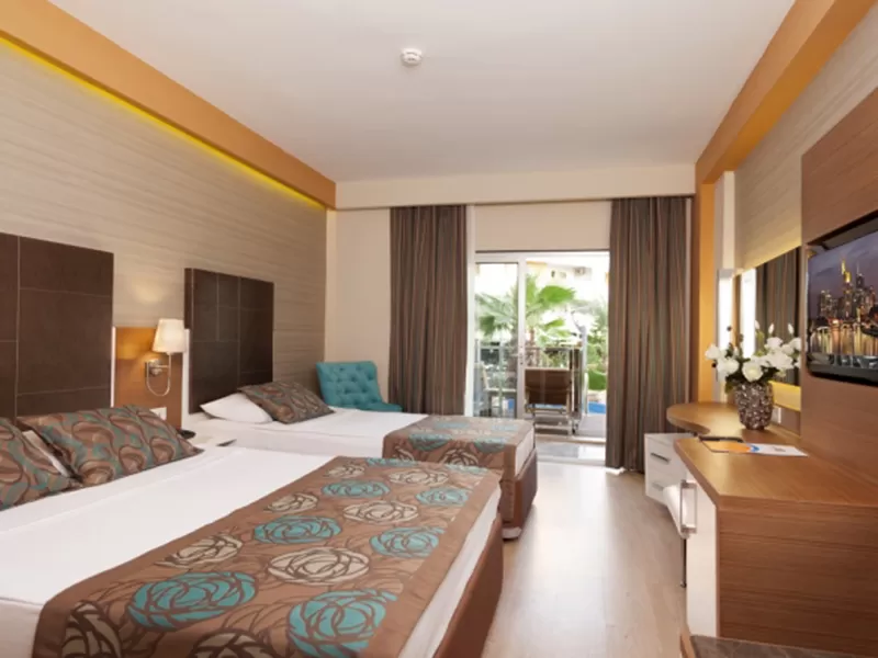 Отель открыт в 2008 году, последняя реновация была в 2012 году. Общая площадь -23 000 кв. м. Отель состоит из четырех 5-этажных корпусов. Всего 575 номеров: номера standard (25 кв. м., двуспальная и односпальные кровати, максимум 3 чел.), номера family room (45 кв. м., двухкомнатный номер, двуспальная кровать, 2 односпальные кровати, раскладной диван, максимум 4+1 чел.), номера suite room (35 кв. м., однокомнатный номер, двух спальная и односпальные кровати, балкон (есть номера без балкона), максимум 3 чел.), номера swim up room (25 кв. м., однокомнатный номер, выход к бассейну, максимум 3 чел.). Отель размещает гостей с ограниченными физическими возможностями.