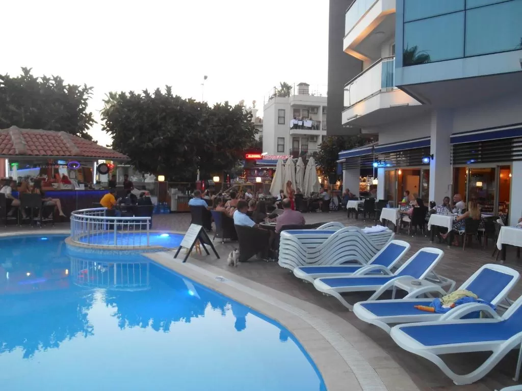 Отель расположен в 1 км от центра г. Алании, на побережье Средиземного моря, в 120 км от аэропорта Анталии, в 50 м от городского пляжа, в 40 км от аэропорта Газипаша г. Алании.