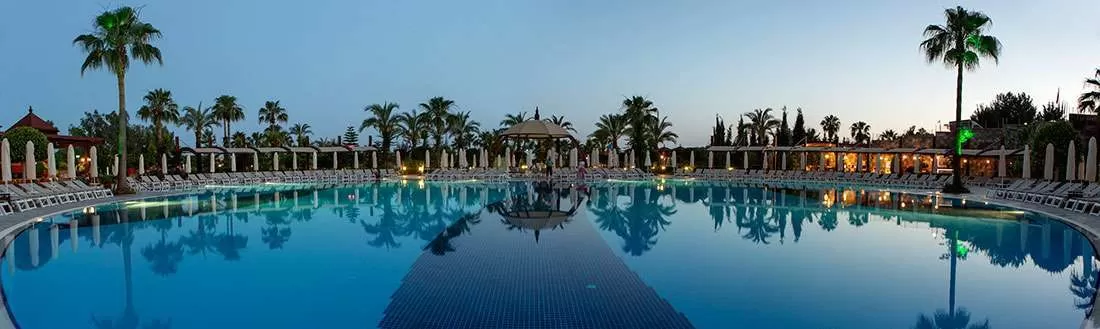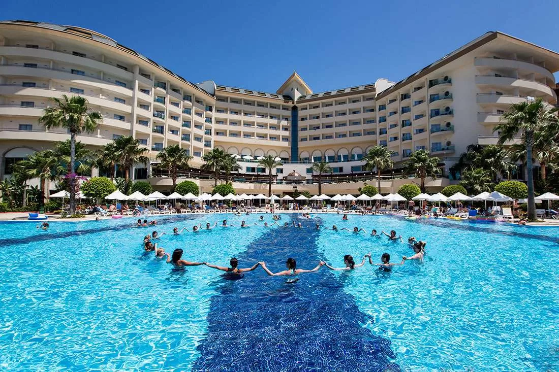 открытый бассейн, 3 водные горки, крытый бассейн, теннисный корт (жесткое покрытие), салон красоты, SPA& Wellness центр, 3 конференц-зала (до 350 чел), основной и 2 ресторана A’la Carte (Итальянский и Турецкий), 5 баров, дискотека.