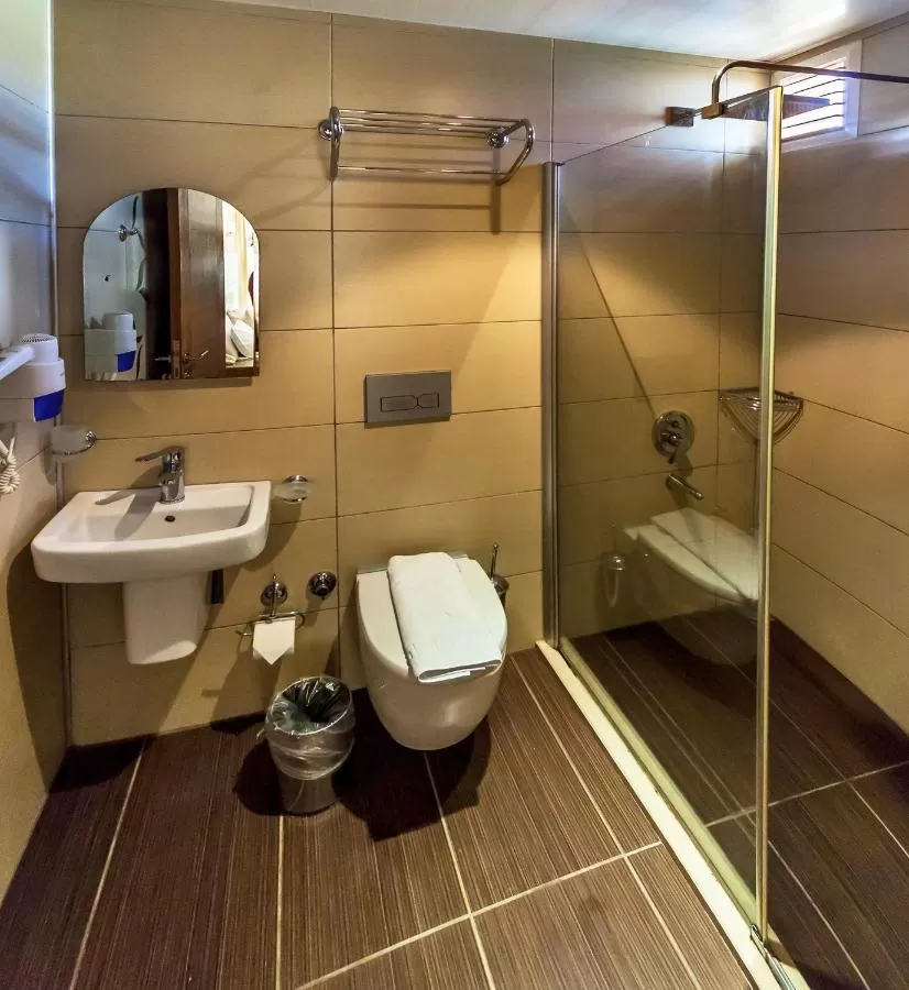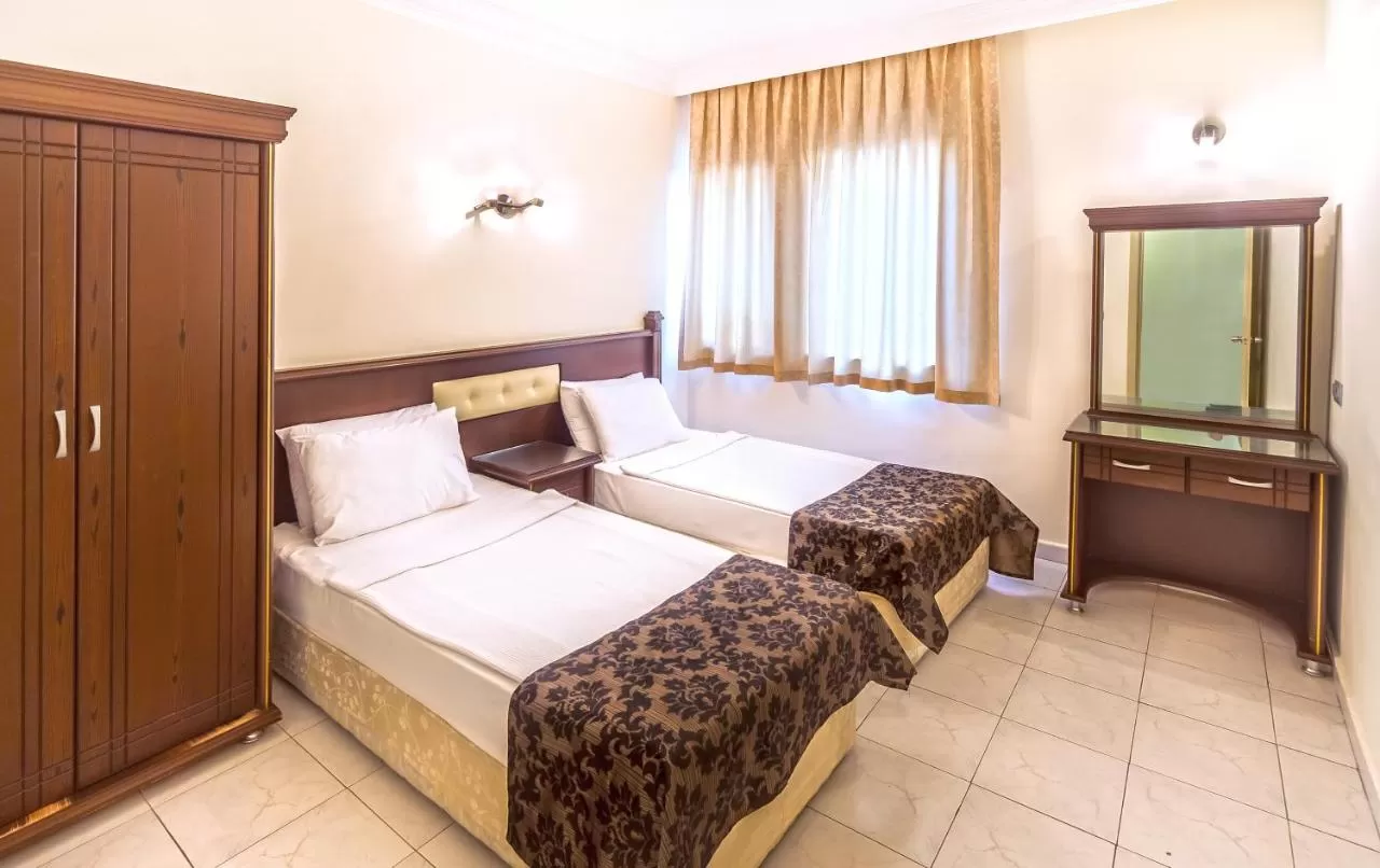 Фен в номере, инд. кондиционер, пол –керамическая плитка, балкон не во всех номерах, уборка номера - ежедневно, ТВ - спутниковое (есть русский канал), телефон, душ, сейф (платно), смена белья-2 раза в неделю, дополнительная кровать (раскладная кровать -по запросу), мини-бар (пустой).