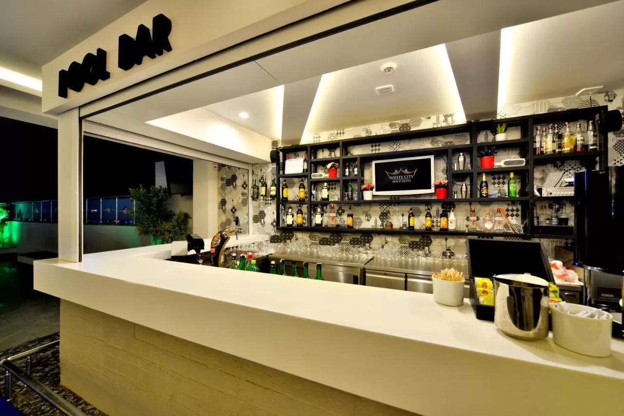 Платно: импортные напитки, пиво на пляже, блюда по меню в баре на пляже.