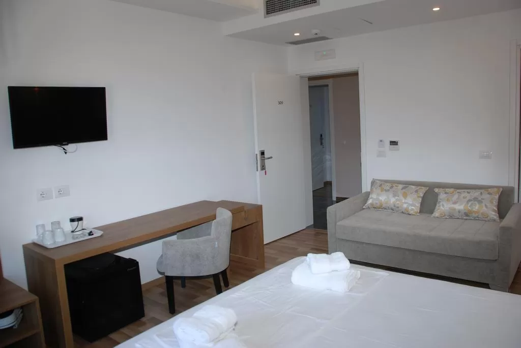 В отеле 4 этажа с лифтом и 34 стандартных номера с боковым видом на море. В каждом номере есть балкон, кондиционер, телевизор, шкаф для одежды, прикроватные тумбы, мини-холодильник, стол и стулья, ванная комната (душевая кабина, туалетно-косметические принадлежности, полотенца, фен). Детская кровать предоставляется по запросу.