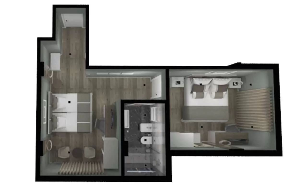 FAMILY SV/SSV: двухкомнатный номер с балконом, с одной двуспальной и двумя односпальными кроватями. Всего в отеле 4 номера.