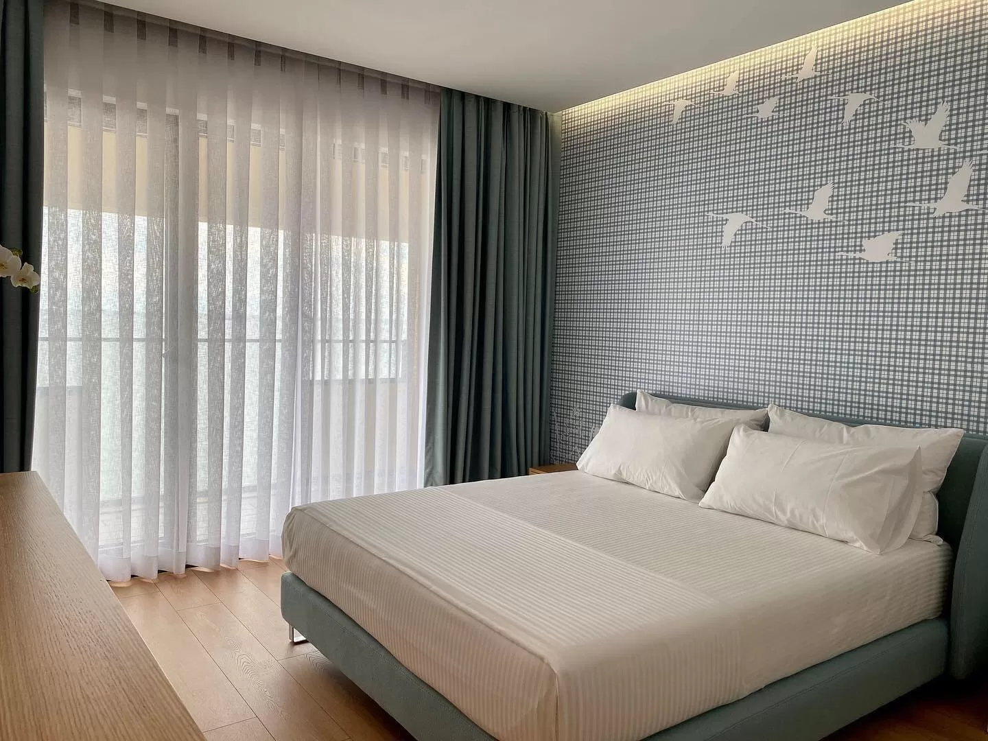 Junior Suite SV: около 35 м2, номер имеет зону гостиной (раскладной диван) и зону спальни (двуспальная кровать). Номер рассчитан на размещение 2 взрослых и 2 детей (до 14.99), в номер возможно поставить доп.кровать (за доп.плату). Имеются 2 балкона: один с видом City View, другой с видом Sea View. Всего в отеле 2 номера.
