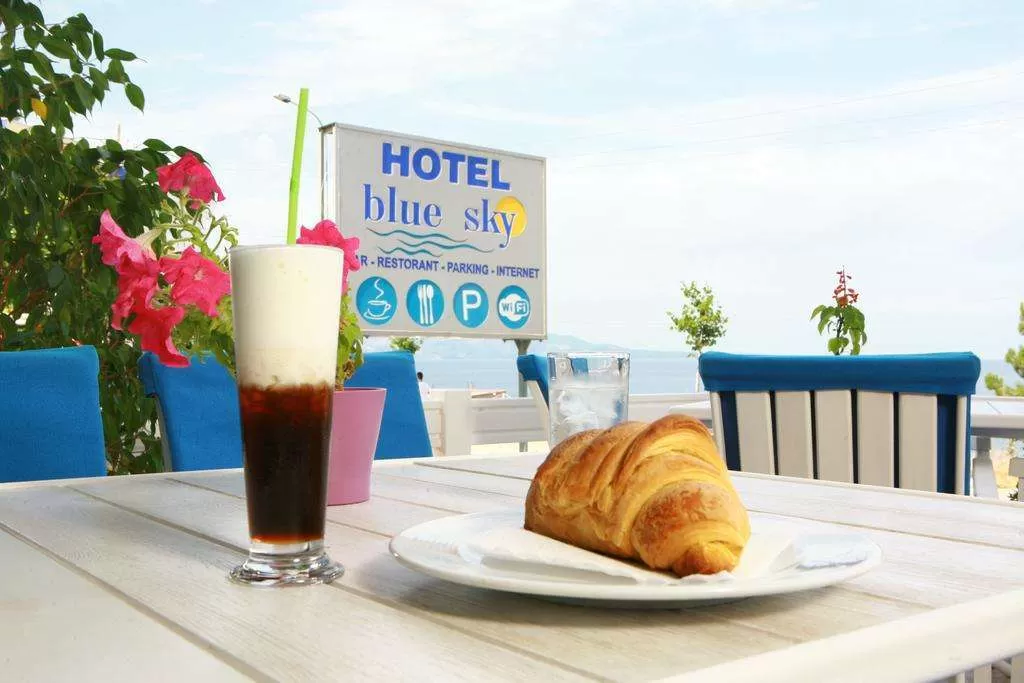 Все номера отеля Blue Sky оснащены кондиционером, телевизором с плоским экраном и спутниковыми каналами, шкафом, мини-баром и столом. В собственной ванной комнате установлен душ, а с меблированного балкона открывается вид на горы или море