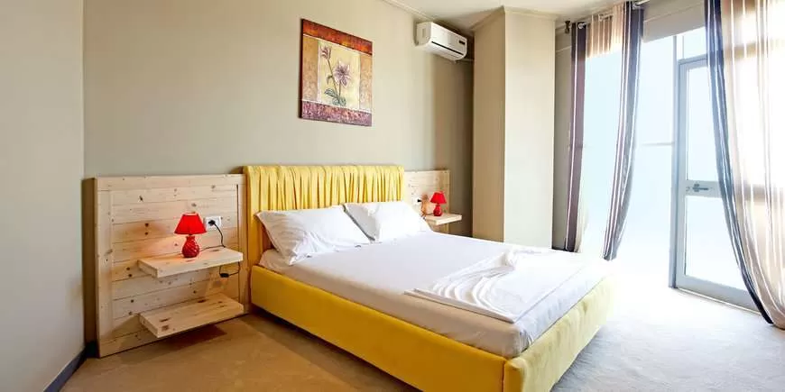 Во всех номерах: кондиционер, двуспальная кровать, шкаф, телевизор, мини-бар, ванная комната (душ, фен, душевые принадлежности). Уборка номера (ежедневно). Смена постельного белья (один раз в три дня)