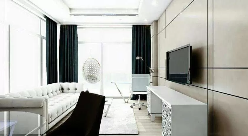 SUITE DELUXE: около 78 м², улучшенный двухкомнатный номер с частичным видом на море (Partial SV). Разделен на спальню и гостиную. В спальне - 1 двуспальная кровать размера King size, в гостиной - диван (может быть использован, как спальное место для одного взрослого или двух детей). Всего 1 номер в отеле.