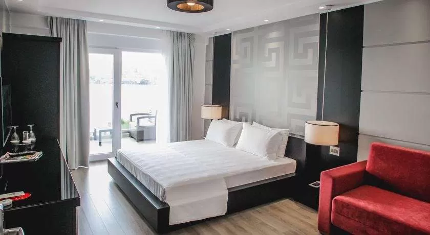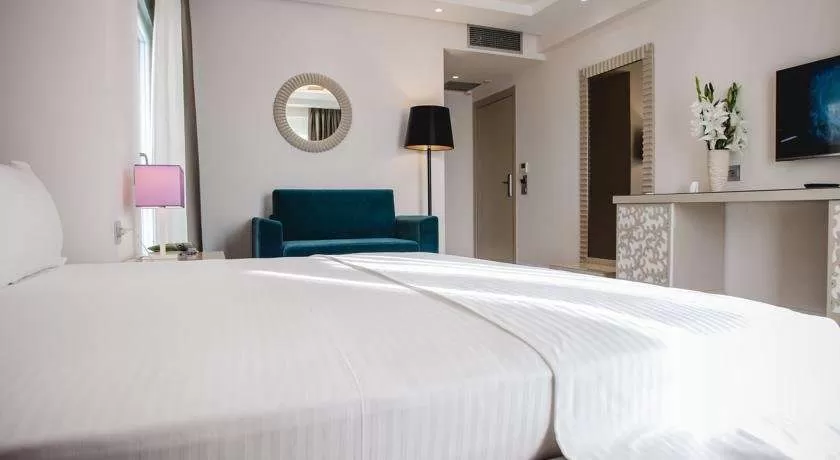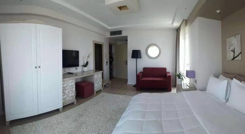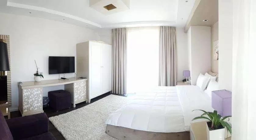 DBL DELUXE: около 25 м², улучшенный однокомнатный номер с видом на море (SV), 1 двуспальная кровать размера King size, есть гостиная зона с 1 диваном (может спать ребенок до 7 лет). Дополнительная кровать для взрослого предоставляется платно по запросу. Общее количество номеров в отеле: 11.