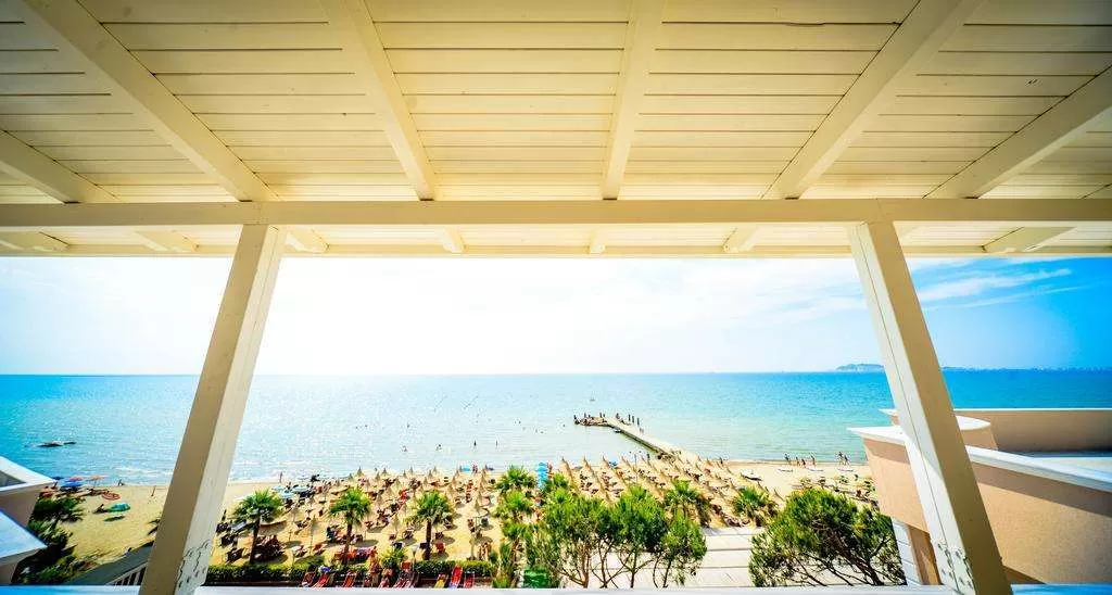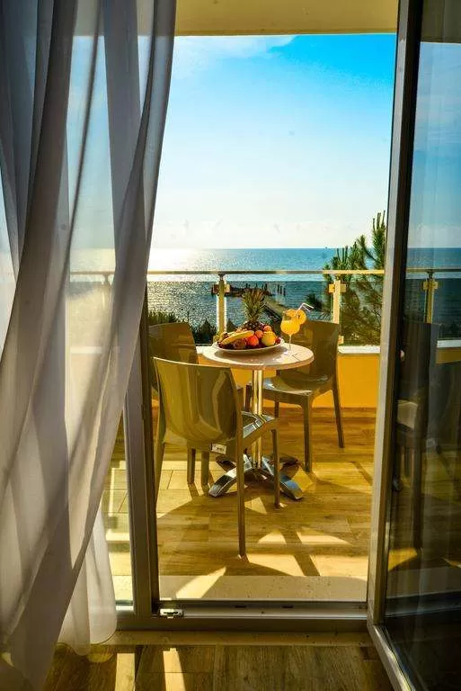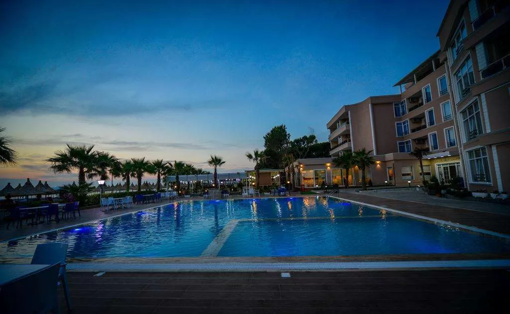 Отель имеет собственный песчаный пляж и открытый бассейн. Пользование зонтиками и шезлонгами без дополнительной платы.