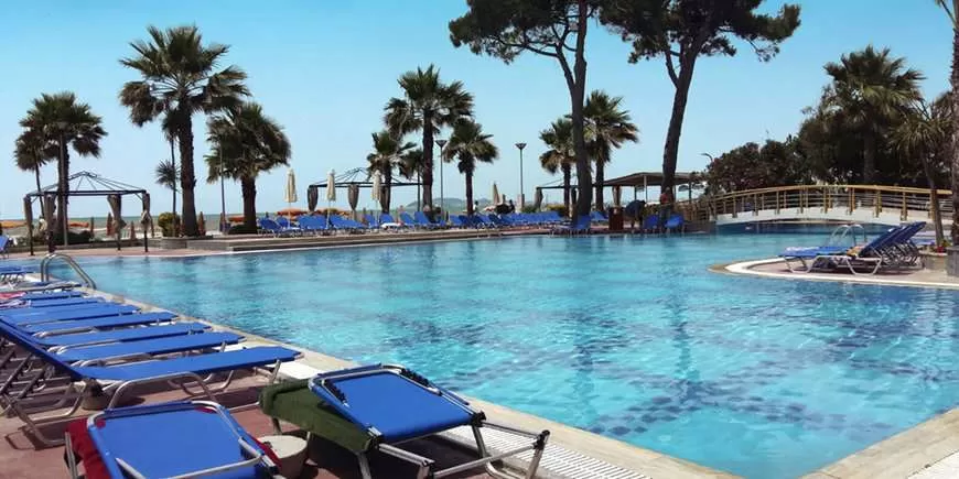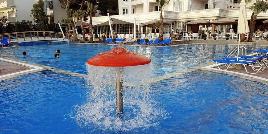 Бассейн, пресная вода, ок. 350 м², гл. 1,4 м, у бассейна бесплатные зонты и шезлонги; анимации для взрослых и детей: спортивные занятия, живая музыка.