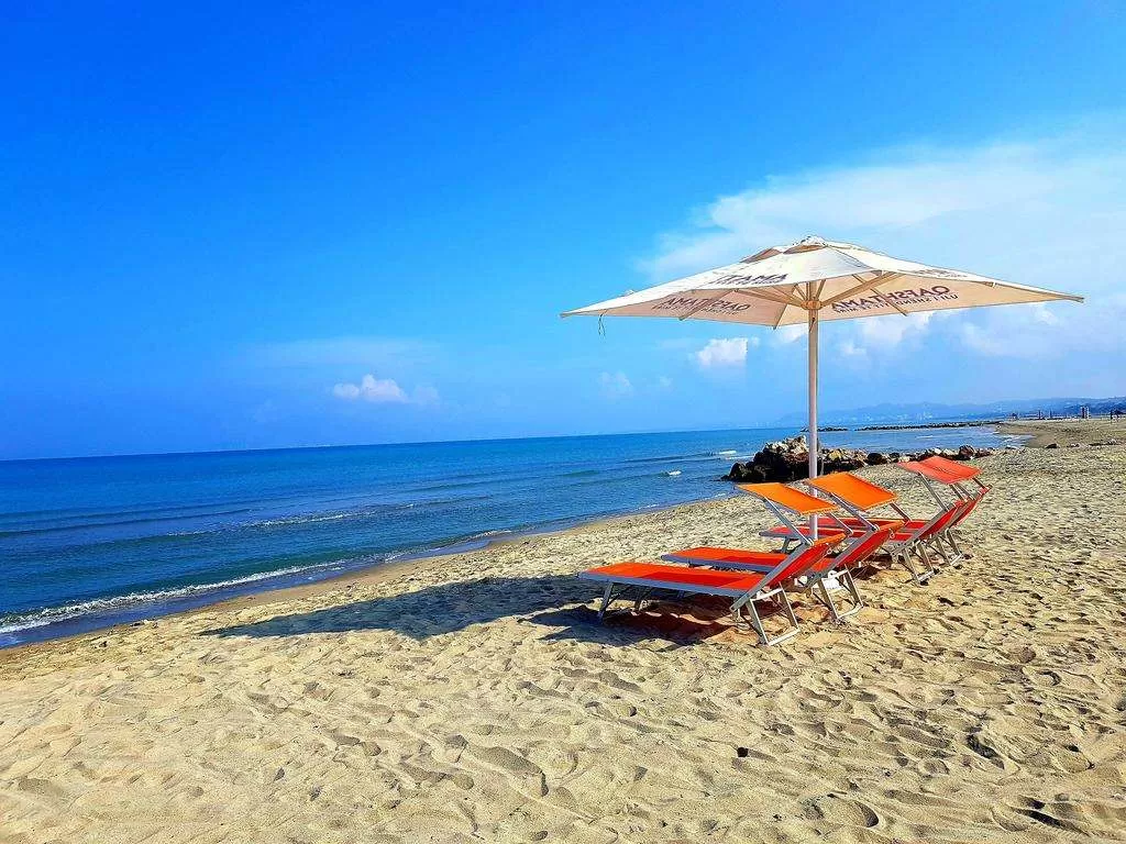 Собственный песчаный, шезлонги и зонтики предоставляются бесплатно