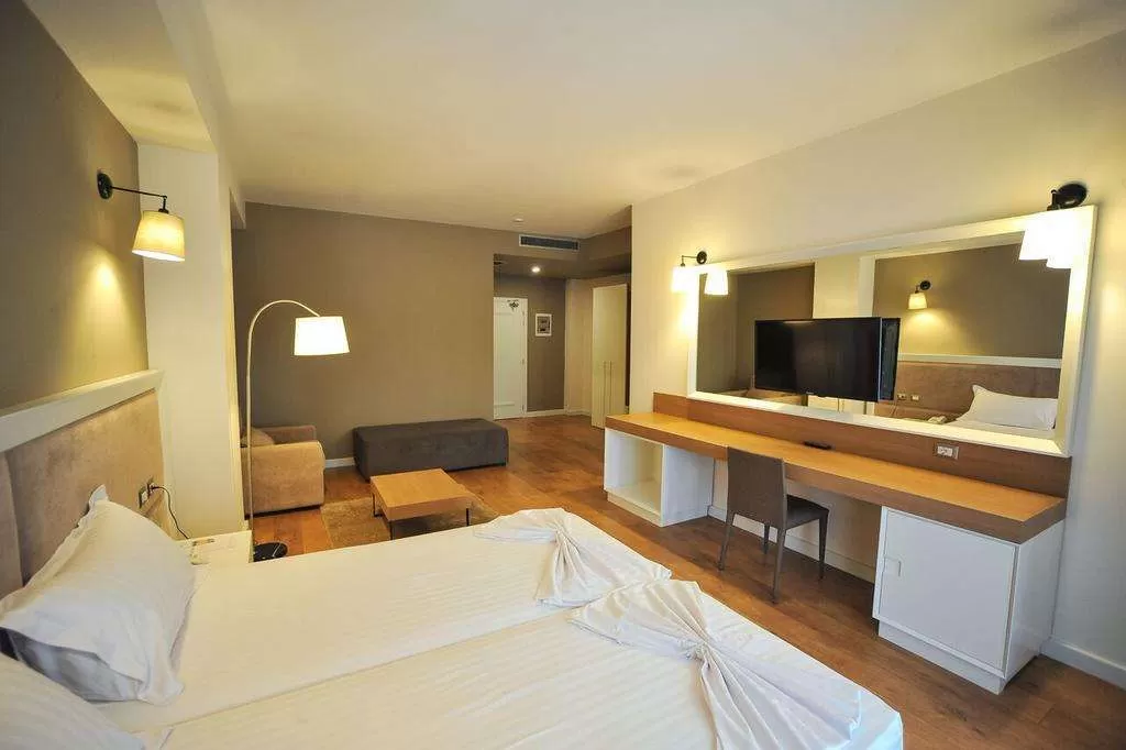 Отель имеет собственный песчаный пляж (20 м от отеля). Полотенца для пляжа, зонтики и лежаки включены в стоимость. Кроме того, в отеле имеется два открытых бассейна, один закрытый бассейн, сауна.