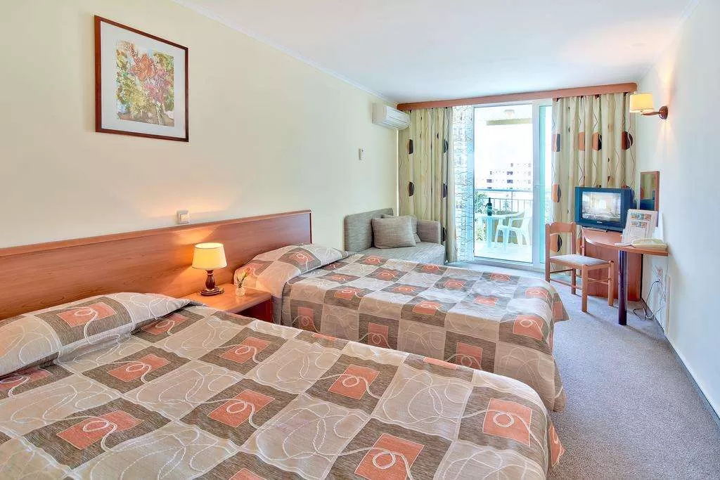 Расстояние от отеля до: пляжа – 130 м; торговой улицы - 50 м; аквапарка Аквамания – 800 м; минигольфа - 20 м; автовокзала – 1000 м; аэропорта Варны - 40 км; Балчика – 10 км; Добрича – 40 км.