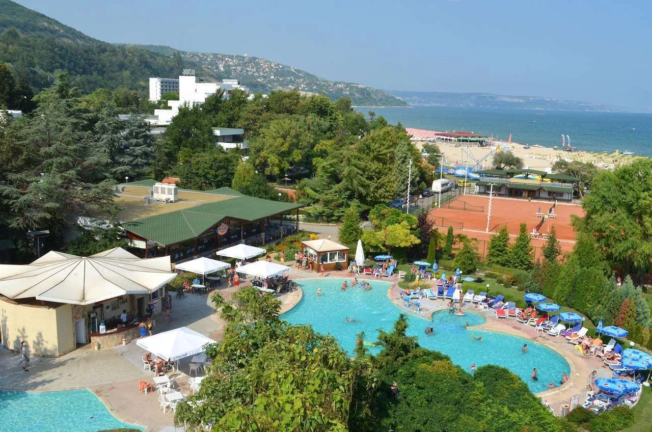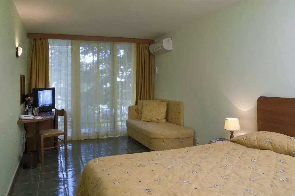 в 80 метрах от пляжа, всего в нескольких метрах от торговой улицы курорта. В отеле 157 номеров, все с балконами. Основной буфет ресторан с открытой террасой, предлагает гостям широкий выбор блюд болгарской и европейской кухни. Один зонт и два лежака, на номер – бесплатно. В распоряжении гостей еще бассейн, детский бассейн, лобби бар, бар у бассейна, снэк-бар. Работает по системе Все включено.