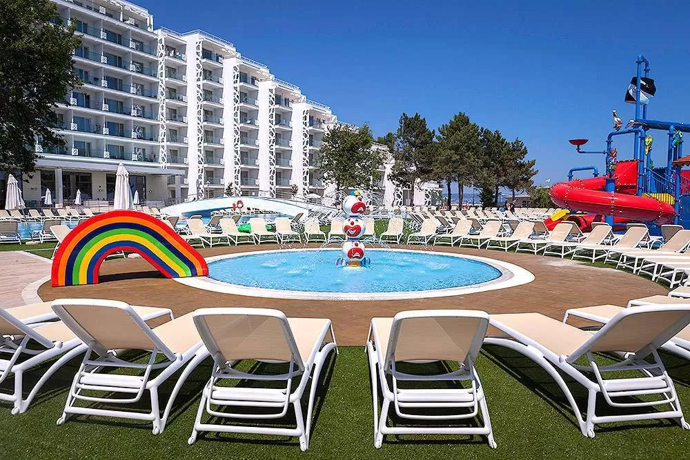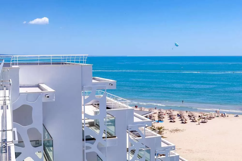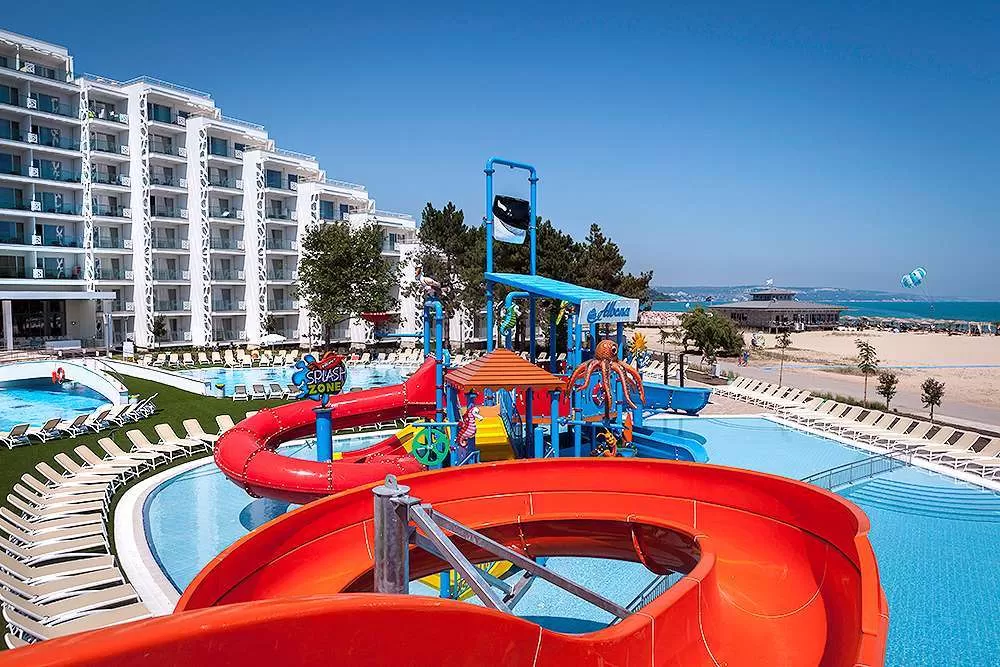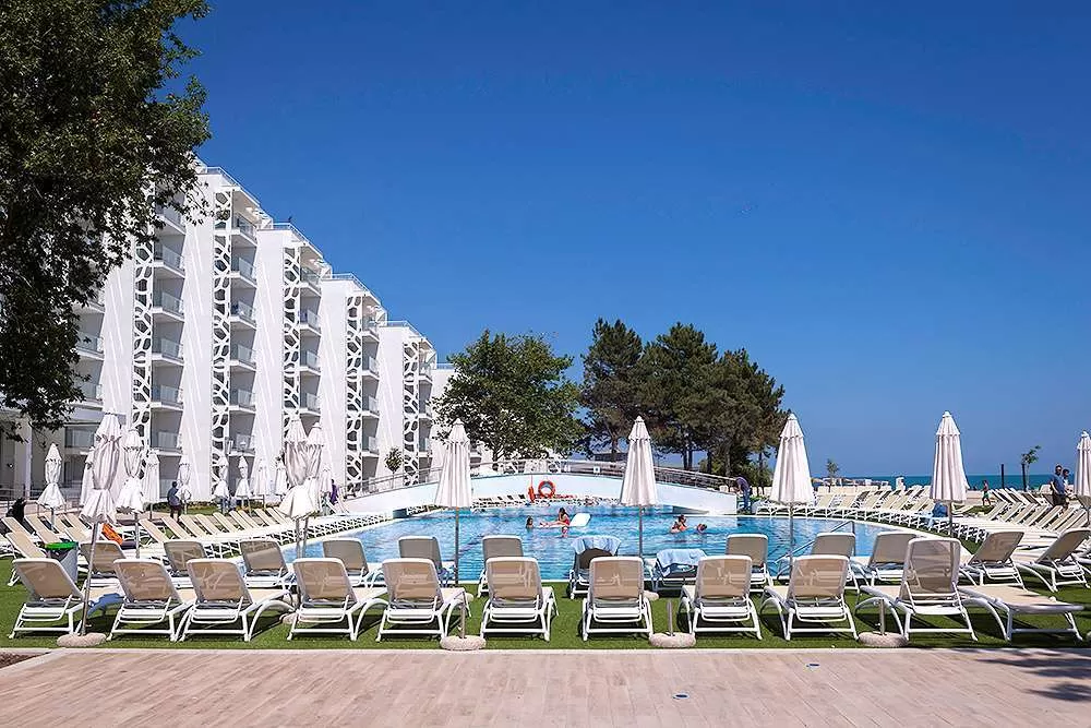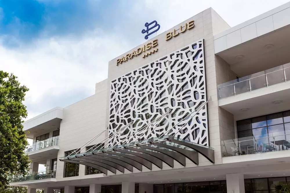 Со своим идеальным расположением, в центре комплекса, на самом берегу моря, новопостроенный в 2017 году пятизвездочный отель Парадайс Блу 5*, предоставляет своим гостям высокий стандарт качества во всех отношениях. Разработаны как сочетание пространства и стиля, всех 233 двухместные номера и апартаменты, создающие ощущение идеального отдыха. "А-ля-карт" или "шведский стол" в ресторанах предлагают изысканные блюда, приготовленные из экологически чистых продуктов. А в барах и ночном клубе отеля Вы можете насладиться расслабляющей атмосферой, и полноценных вечерах. Из грандиозного открытого бассейна открывается прекрасный вид на море и идеально подходит для беззаботного отдыха и развлечений. Современные шезлонги - бесплатные для гостей отеля. SPA & Wellness-центр предлагает уникальные инновационные программы и СПА-процедуры. В отеле также имеется оборудованный мультифункциональный зал на 500 мест который подходит для мероприятий, таких как семинары, корпоративы, фуршеты, вечеринки и коктейли.