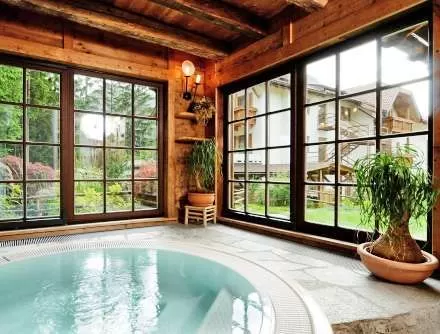 Ресепшн,бар,ресторан,сад,парковка, wellness с сауной и джакузи.