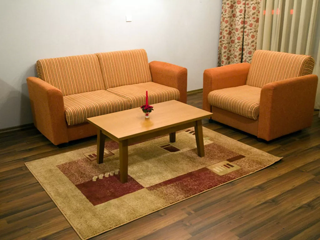 В апартаментах с двумя спальнями: две спальни (с двумя отдельными кроватями и раскладным диваном), гостиная.