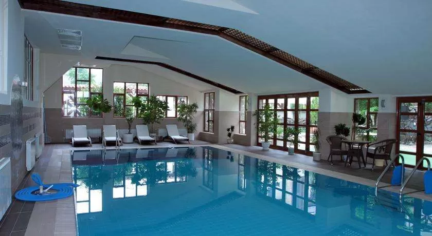 В виллах: 1-ый этаж: гостиная с камином и мягкой мебелью, телефон, спутниковое TV, современно оснащенная кухня, мини-бар, сауна, "механа" с камином (одна вилла без механы) и теплый гараж.