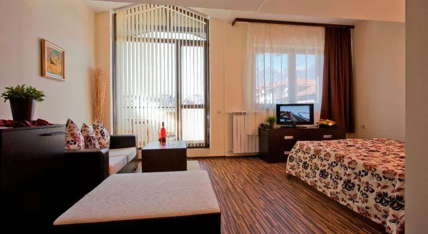 - тренажерный зал; сауна; паровая баня; бассейн с самым большим водным зеркалом в Банско; гольф-симулятор; прокат лыж и сноубордов.