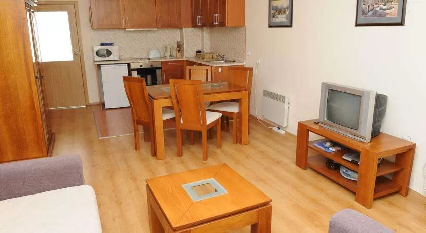 С отдельной спальней и гостиной, ванной комнатой, спутниковым телевидением и мини-кухней.