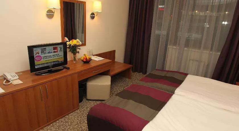 В номере - две отдельные кровати, спутниковое ТВ, телефон, мини-бар.