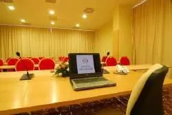 3 конференц–зала: главный зал площадью 150 м2 может вместить в себя 120 человек, если места расположены в виде ученических мест (класса), 150 человек – в виде театра или 50 человек, если места расположены в виде буквы П. Вторые два зала имеют площадь 70 м2 и вмещают в себя 40 ученических мест, 50 мест в виде театра или 25 мест, расположенных в виде буквы П. Все залы оборудованы самой современной аудио - и видео - аппаратурой, которая включает в себя: персональный компьютер, принтер, проектор, экран размером 240*240, DVD, телевизор, видео, интернет, современное звуковое оборудование, есть возможность использования факса, ксерокса, принтера.