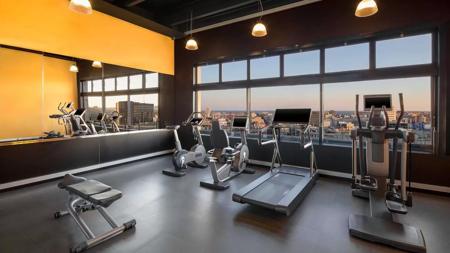 круглосуточный тренажерный зал на верхнем этаже с прекрасным видом на море. Прокат велосипедов.