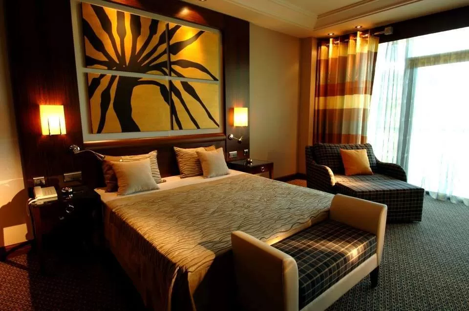 семь основных 4-5-ти этажных корпусов – 502 Standard Rooms (52 м2): кондиционер центрального управления, LCD TV, Интернет проводной и беспроводной (бесплатно), мини-бар (прохладительные напитки, пиво - ежедневно / бесплатно), сейф (бесплатно), ванна и душ, халаты, тапочки, увеличительное зеркало, прикроватный пуф, утюг, гладильная доска, шезлонг на балконе, ковровое покрытие; 18 Corner Suites (70 м2): гостиная с двумя раскладными диванами, спальная комната (с 32"м LCD TV), межкомнатная дверь, ванная комната с джакузи, балкон или терраса, оснащение стандартного номера; 63 Dublex Family Rooms (80 м2) 1-й эт: салон с двумя диван-кроватями, ванная комната с душем, 32"м LCD TV, балкон; 2-й эт: спальня без межкомнатной двери, с двуспальной кроватью, ванная комната с ванной и душем, утюг, гладильная доска, халаты, тапочки, полотенца, шезлонг на балконе, ковровое покрытие;