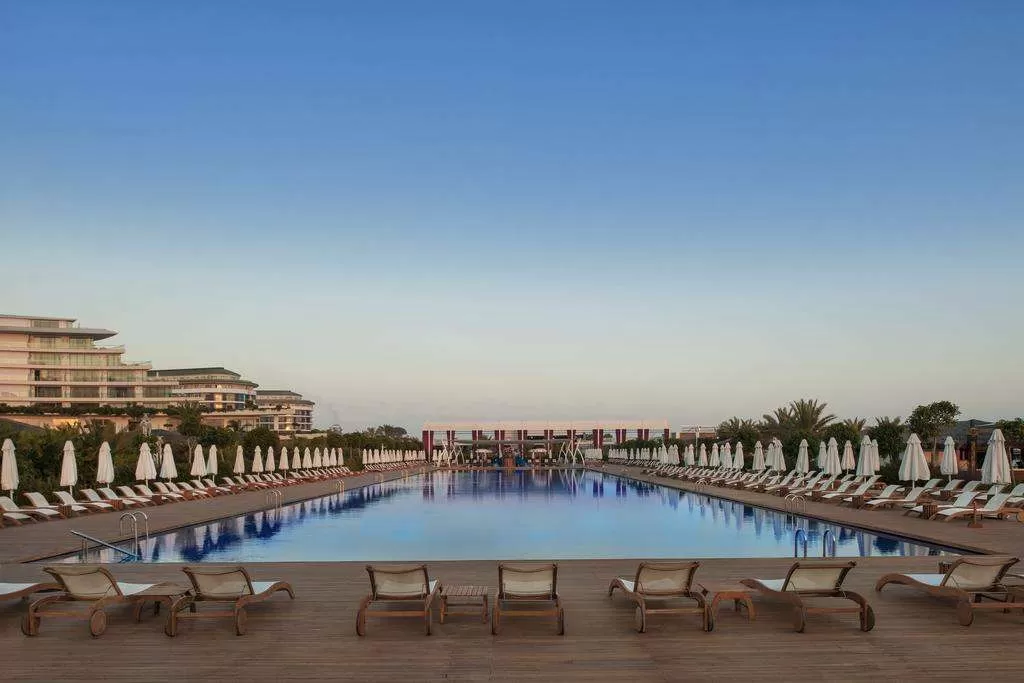 Бассейны: 7 (открытые: один из них с морской водой, один бассейн для взрослых), крытые бассейны: 1, аквапарк (11 водных горок для взрослых и 8 для детей), у бассейна зонтики, шезлонги, матрасы, полотенца: бесплатно, спа-центр, интернет-кафе бесплатно, рестораны: 1 (Azure 24, работает круглосуточно), рестораны a la carte: 6 (турецкий, итальянский, Royal Villa, c 07:00 до 23:00, бесплатно; рыбный, азиатский, Bueno стейк-ресторан, по предварительной резервации – плата за резервацию), 15 баров, конференц-залы: 23 (на 14 –1914 чел.), кинозал, химчистка, парикмахерская, магазины, прачечная, кабинет врача, кондитерская.