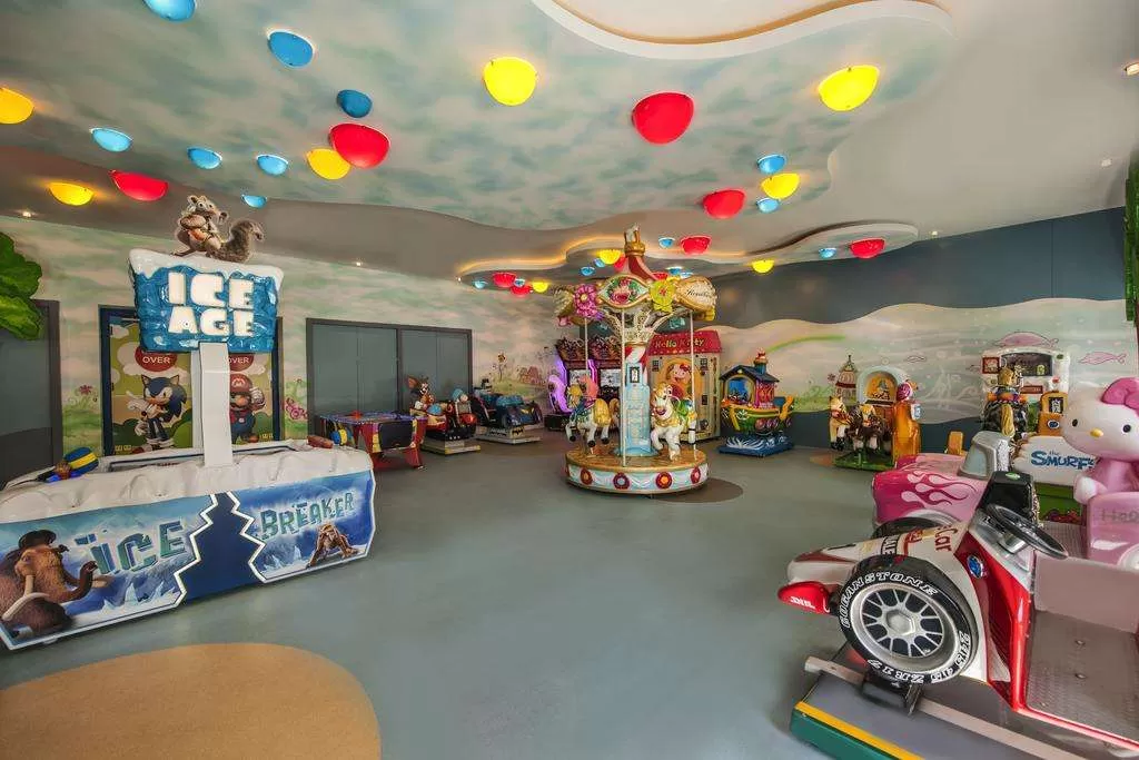 Детские бассейны: 3, детская площадка, детский ресторан (2), услуги няни: платно, детские клубы: 3 (мини-клуб 4–7 лет; юниор-клуб 8–12 лет; тинейджер-клуб 13–17 лет), 3 детских кинозала, игрушки для детей с ограниченными физическими возможностями, динопарк, детская