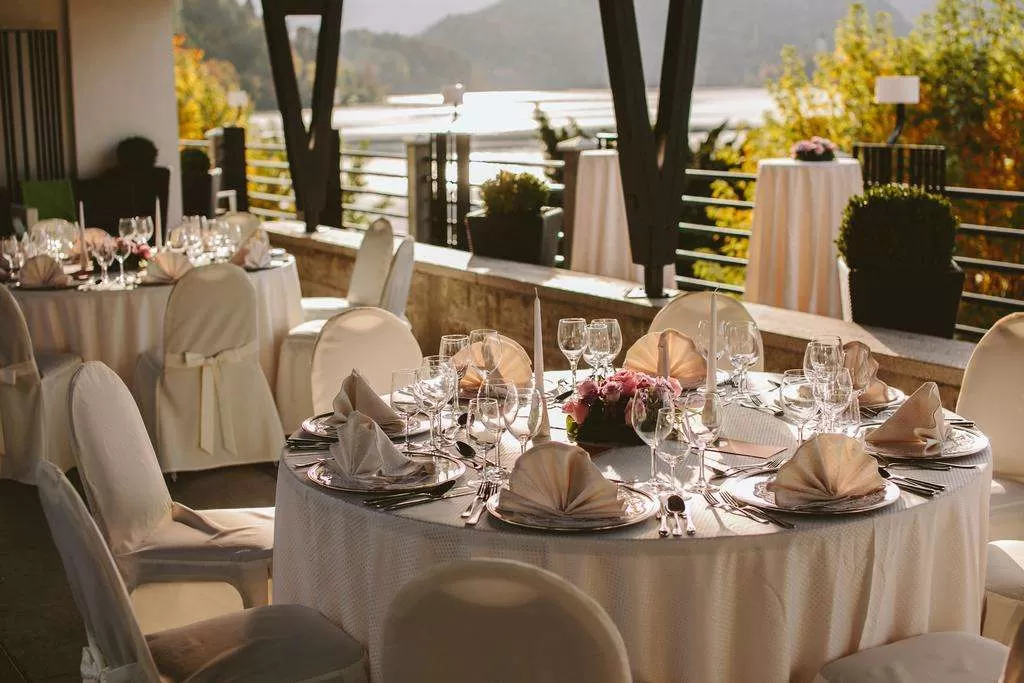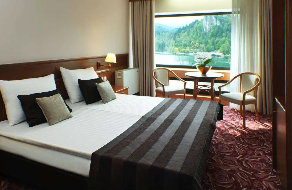 Ресторан и кафе «Рикли» на берегу озера, кондитерская, кафе, дискотека, крытый термальный бассейн, вирпул, сауна, солярий, тренажерный зал, массажный и косметический салон, 8 конференц-залов по 30-120 посадочных мест, казино Блед напротив отеля.