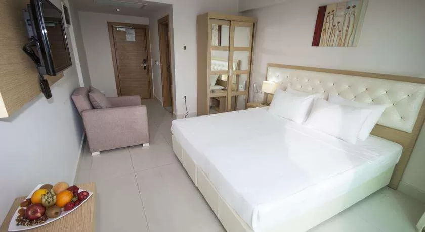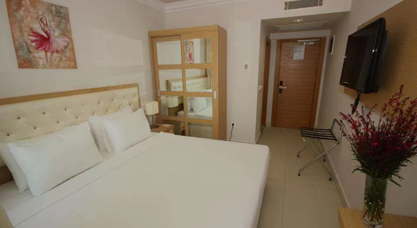 В номерах представлено: центральный кондиционер, мини-бар (пустой), спутниковое ТВ, интернет, душ, фен, балкона нет, сейф (бесплатно).