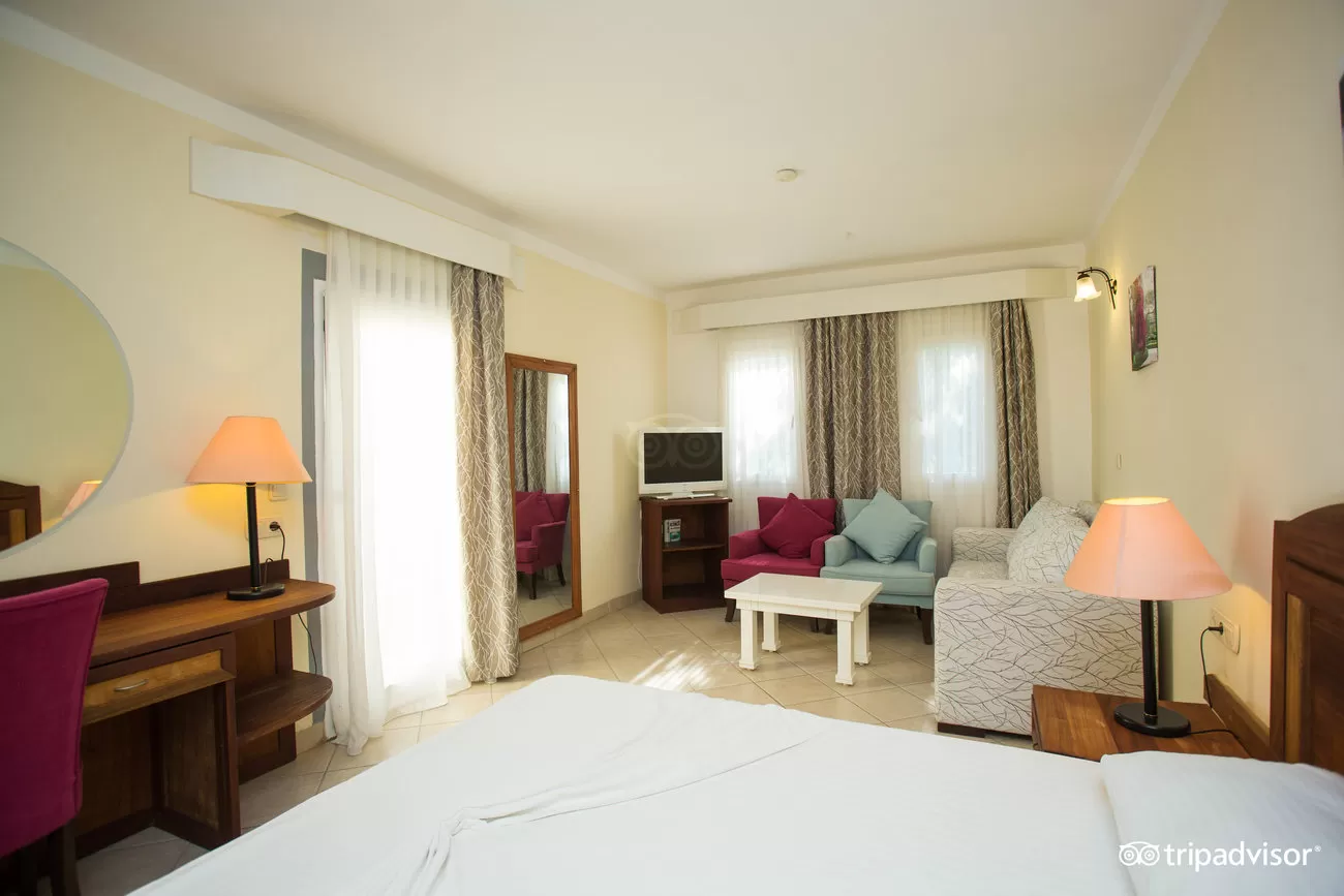 Фен в номере, индивидуальный кондиционер, пол – керамическая плитка, балкон или терраса, уборка номера - ежедневно, ТВ - спутниковое (есть русский канал), телефон, душ, сейф (платно), мини-бар (платно), смена белья-2 раза в неделю.