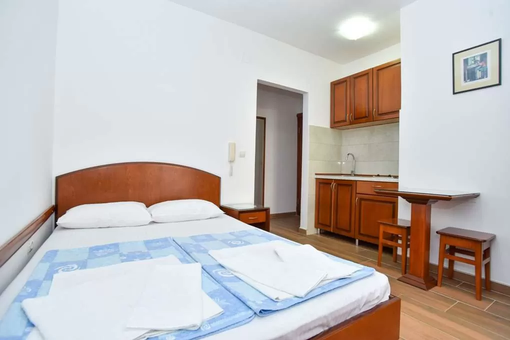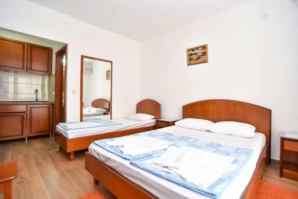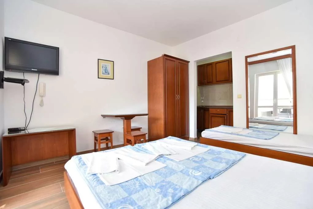 Примечание: Не принимают с животными; разрешено готовить; нет прачечной и утюга; есть возможность подключения к Интернету в номерах (бесплатно); сейф только у администрации (бесплатно); все номера и апартаменты имеют вид на соседние дома и дворы, кроме апартамента №12, который не имеет террасу, но через окно боком видно море. Половое покрытие везде – керамическая плитка. Некоторые номера Studio имеют общий коридор.
