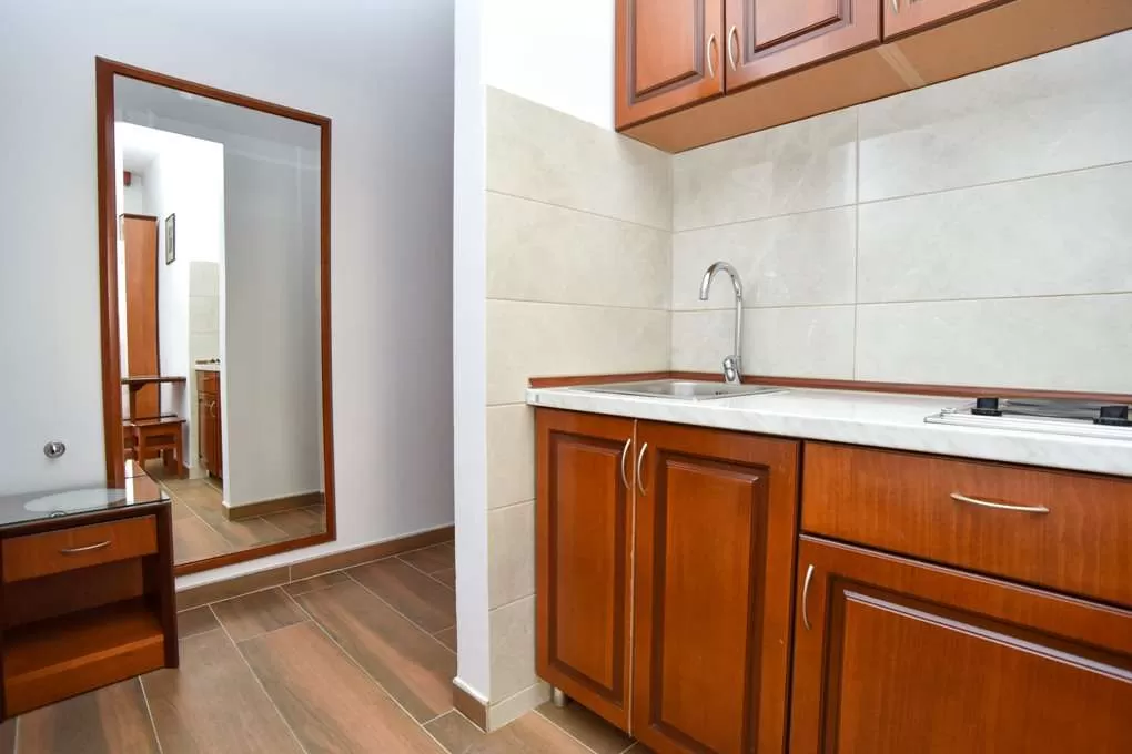 Studio STD: 18м2 + терраса 8м2; французская кровать, мини-кухня.