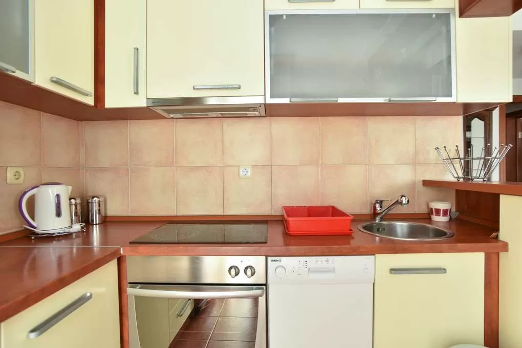 В апартаментах: полностью оборудованная кухня, кабельное ТВ (русский Первый канал), фен, кондиционер.
