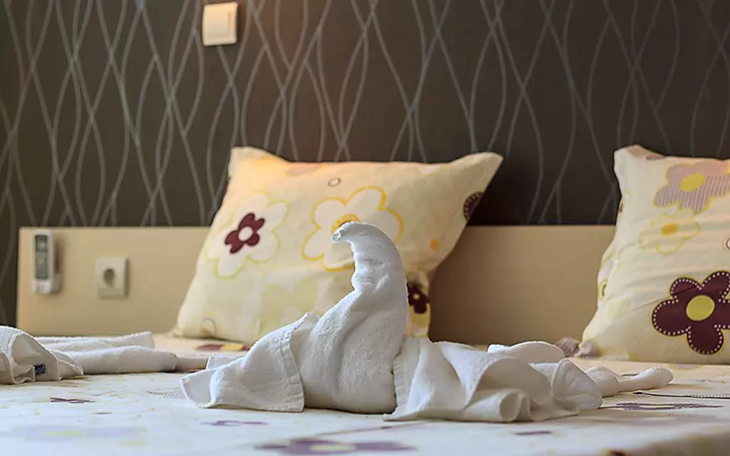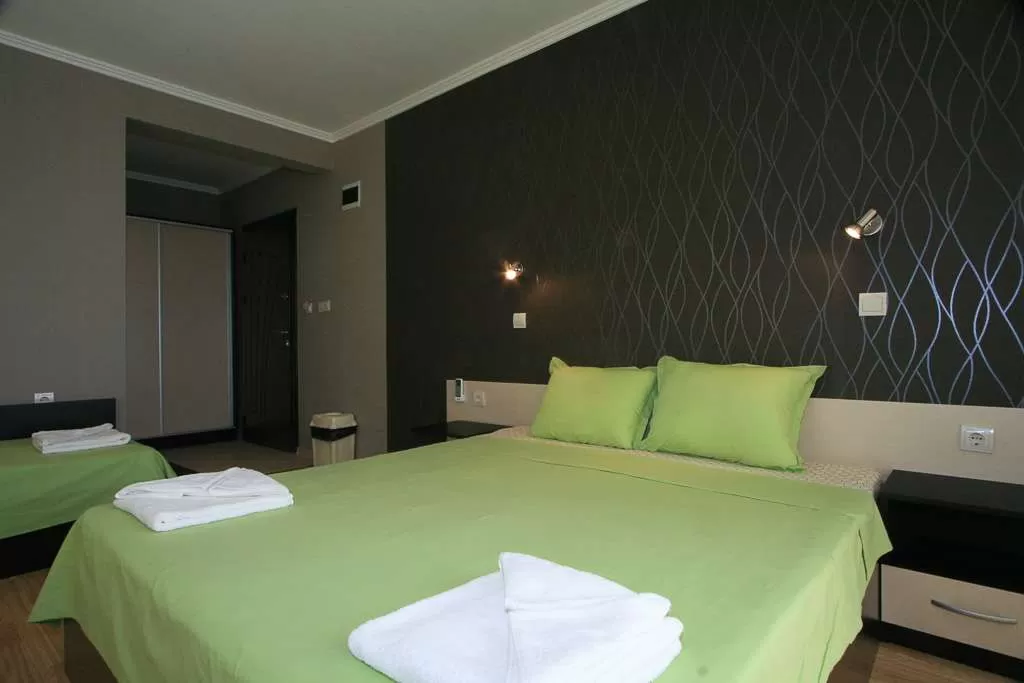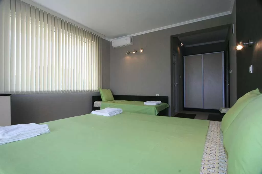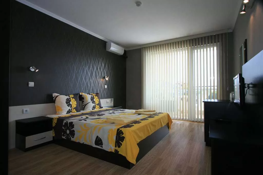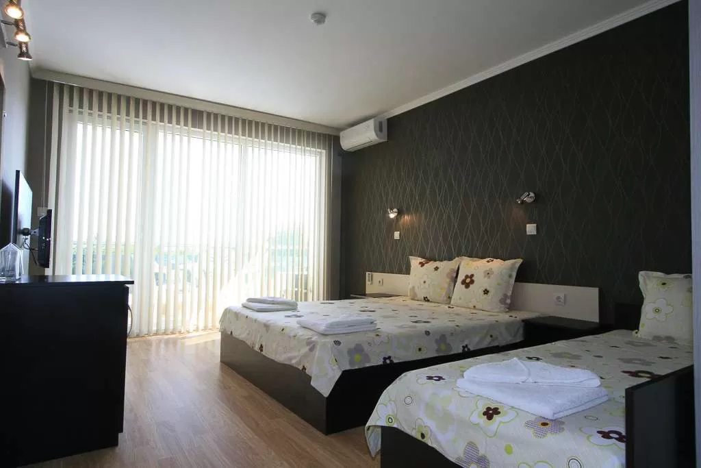 Отель предлагает размещения в стандартных двухместных и трехместных номерах, а также в односпальном апартаменте. В номерах есть кондиционер, мини-бар, LCD-телевизор с кабельными каналами, туалет, душевая комната с феном и большая терраса со столом и стульями.