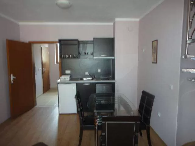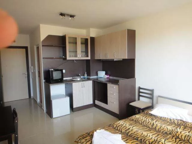 Кондиционер; TV; холодильник; интернет; балкон или терасса (стол + 2 стула); кух. уголок; доп. кровать – раскл. диван; уборка – каждый день; смена полотенец – каждые три дня; постельное белье – каждые пять дней; на полу – ламинат/плиты; в ванной: душ/полотенца.