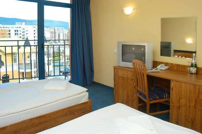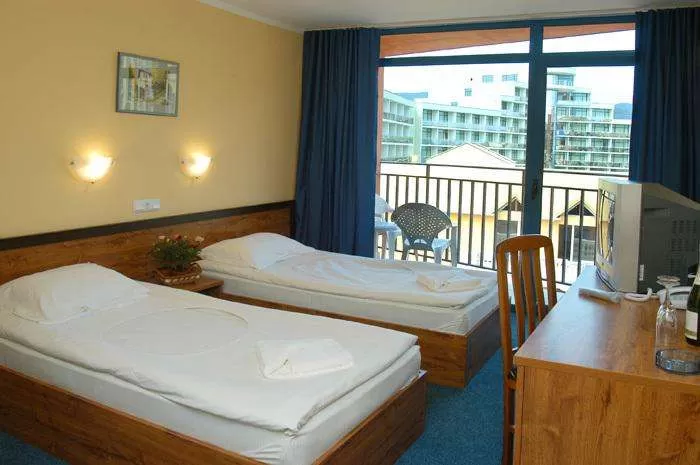 Доп. кровать (кресло-кровать), индивидуальный кондиционер, спутниковое TV, мини-бар, телефон, санузел с душем, фен (на рецепции), балкон, пол – ковровое покрытие, уборка номера – ежедневно, смена постельного белья – 1 раз в неделю, смена полотенец – 2 раза в неделю.