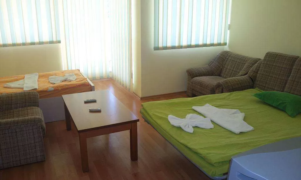 Отель расположен на курорте Солнечный берег, в пределах пешей доступности от баров, ресторанов и супермаркета, всего в 500 метрах от пляжа, на расстоянии 5-ти минутной обзорной прогулки от главной торговой улицы города. В 1,5 км от отеля находится аквапарк. Аэропорт Бургас находится в 25 км от отеля. Несебр находится в 10 мин езды на автомобиле от отеля.